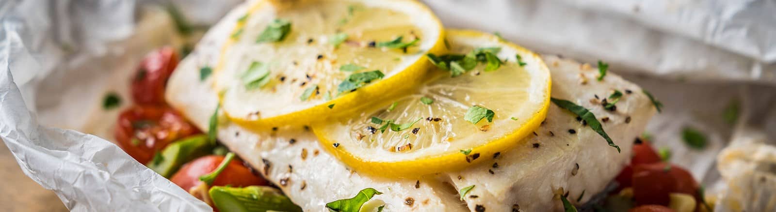 מדליקים את הטרייגר על חום של 230 מעלות וממתינים עם מכסה סגור עד שהחום יעלה. מסדרים 4 חתיכות נייר אפייה ובמרכז כל חתיכה מניחים פילה דג. מתבלים קלות עם מלח ופלפל, מזליפים מעט שמן זית, ומסדרים פרוסות של לימון מעל לכל נתח לפילה. מפזרים סביב כל דג תירס, אספרגוס ועגבניות. מתבלים שוב עם שמן זית, מלח ופלפל.
